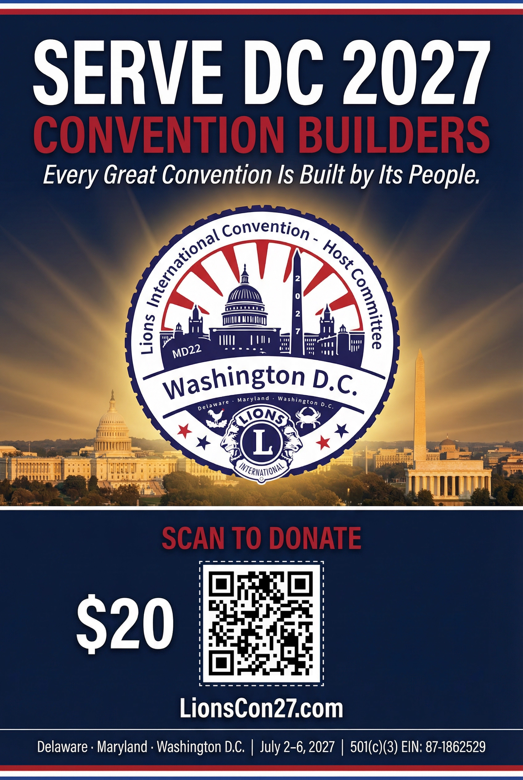 The MD-22 Host Committee, representing Maryland, Delaware, and Washington D.C., is responsible for organizing local hospitality, volunteer coordination, service projects, the iconic Lions Parade, and the Host Night celebration. The Host Committee's $200,000 fundraising goal supports these activities and ensures a world-class experience for all convention attendees.